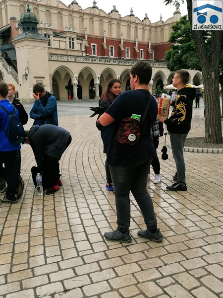 A abychom si po náročném zážitku maličko odpočinuli a nabrali pozitivní energii, odpoledne jsme se přesunuli do sídla polských králů – nádherného historického Krakova na řece Visle. Na největším středověkém náměstí v Evropě, zvaném Krakovský rynek, nás sice po několikáté zastihla ten den přeháňka, ale po tak silných zážitcích déšť snad nikdo z nás ani nevnímal. Došlo tak nakonec i na příjemnější chvíle, jako byla koňská spřežení s turisty či hejnal. Tedy melodie hraná trubačem v každou celou hodinu do čtyř světových stran z Mariánské věže kostela Panny Marie. Zlatým hřebem byl pak pro všechny kluky a holky více než hodinový rozchod po náměstí, a tak si řada z nich nakoupila suvenýry v drobných krámcích, zaskočila na Twistera do KFC či hamburgera do McDonalds´nebo na koktejl do Starbucks. A kdo chtěl přivézt domů něco typického, tomu pedagogický dozor ve složení Mgr. Anna Macháňová, Mgr. Dagmar Lovecká a Bc. Hana Raiskubová poradil, aby se poohlédl po typické polské cukrovince – mléčných krówkách. Ostatně, někteří měli stejné instrukce už od svých maminek, které si je v Polsku kupovaly už jako děti. Zpět ke škole jsme se silným a nezapomenutelným zážitkem všichni v pořádku vrátili krátce po půl jedenácté v noci, takže v pátek se mohlo jít výjimečně do školy až na 10. hodin.