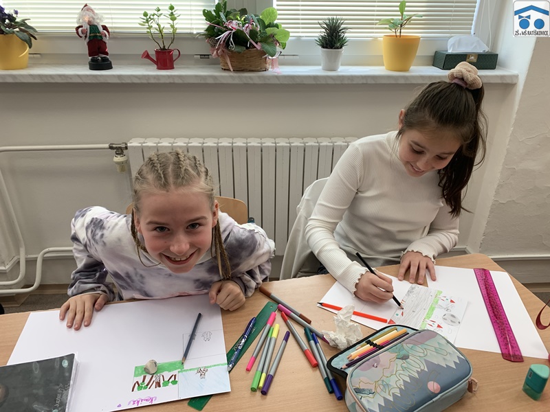 V tomto školním roce se třída 5. B zúčastnila literárně-výtvarné soutěže Jižní Morava čte aneb Nekonečný svět fantazie. Úkolem bylo vytvořit komiks s příběhem. Samotná tvorba byla na základě vlastních fantazií žáků. Všichni se opravdu snažili a věřím, že někteří překonali sami sebe. Krásné práce putovaly do místní knihovny, kde jsou nyní vystaveny. Nejlepšími byla vyhlášena díla Izabely Hubáčkové a Gabriely Rozumové. Holky si zaslouží velkou gratulaci, ale dík patří všem zúčastněným.