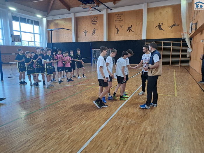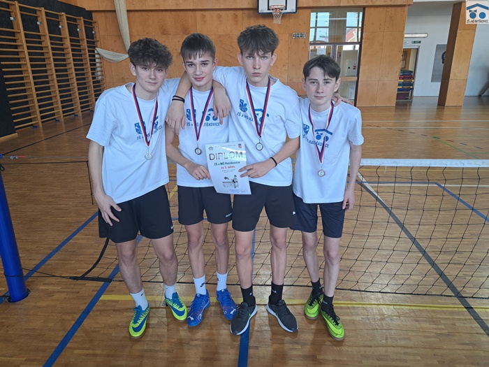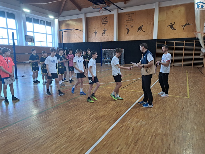 Předposlední školní den roku 2024 jsme se vypravili na okresní finále v nohejbalu, kam jsme si účast vybojovali minulý týden vítězstvím v okrsku v Dubňanech. Turnaj to byl z naší strany rozpačitý. Kluci skončili na výborném druhém místě, ovšem měli i na víc. Naše tříčlenná skupina z níž dvě školy postupovaly do semifinále byla náročná a zápasy v ní naši nohejbalisté odehráli ve velkém stylu - s přehledem porazili 2:0 ZŠ Vracov a po velkém boji padli 1:2 s domácí ZŠ Dolní Bojanovice. Díky druhému místu ve skupině na naše žáky čekala ZŠ Kuželov, která především ve druhém setu nepříjemně kousala. Nakonec však naši vyhráli 2:0. Je třeba připustit, že ve vyřazovacích bojích nám nohejbal nešel podle předsav a velké množství chyb nás velmi svazovalo. Finále již bylo jednoznačné. Domácí nohejbalisté zvítězili jednoznačně 2:0. Soupeř byl lepší a vyhrál ten den zcela zaslouženě, avšak náš výkon nebyl ideální. I přes to patří klukům (Adam Slezar, Filip Halla, Josef Holek, Dominik Vařák) dík za reprezentaci školy a za výborný výsledek.