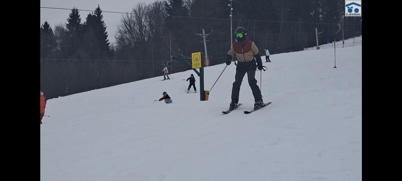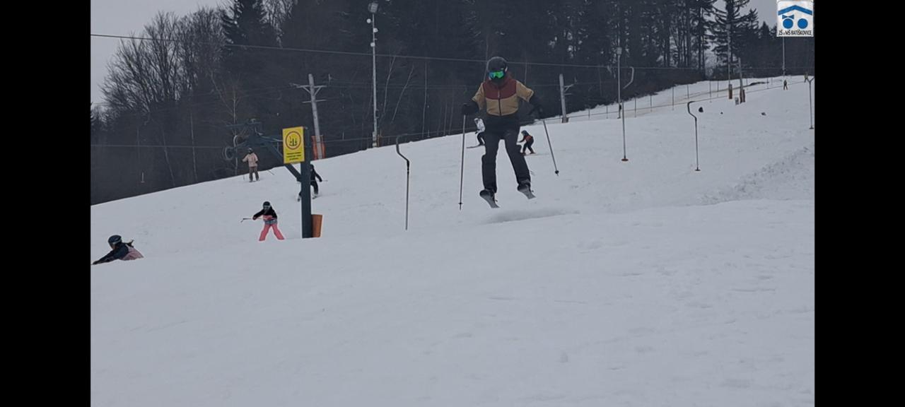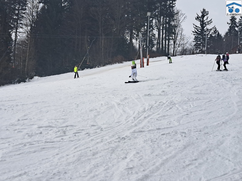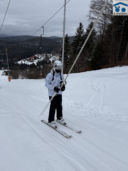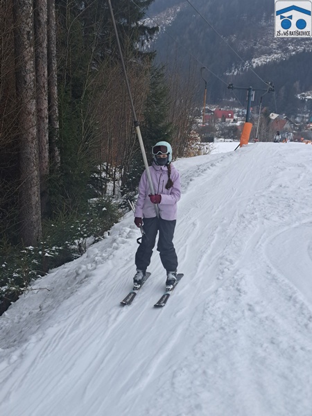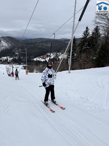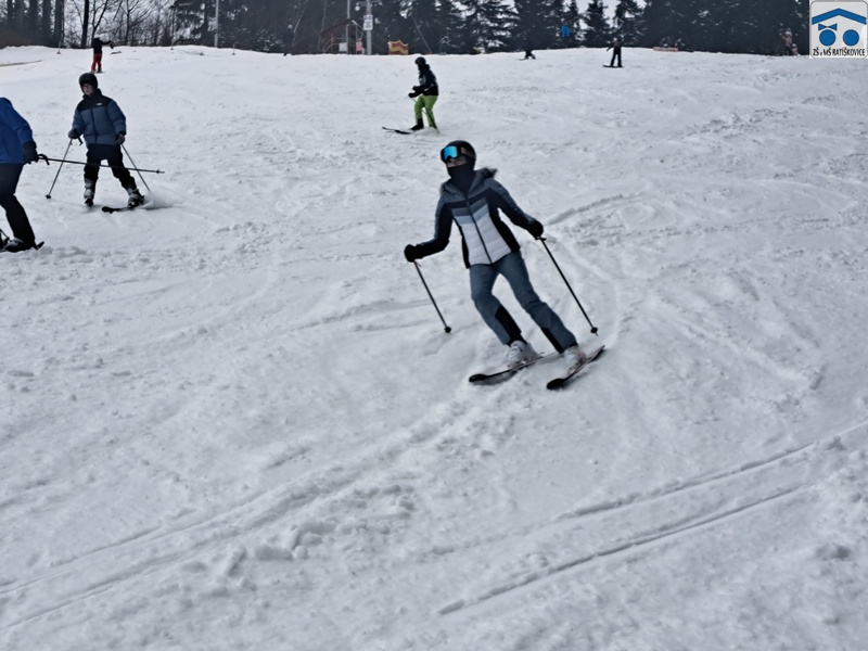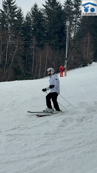 Já si upřímně myslím, že si letošní lyžák každý užil. Ať už ti, co lyžovat teprve začínali, či ti, co už lyžovat umí. Byli jsme rozděleni do pár skupinek podle toho, jak kdo umí lyžovat, které vedli: p. uč. Vrba, p. uč. Holečková, p. uč. Kudrová, p. uč. Kopečková a p. uč. Konštandová. Ve středu bylo také noční lyžování, na které jely dvě nejlepší skupinky a někteří ze třetí skupinky. Všem to moc šlo a i začátečníci si mohli poslední den sjet nejvyšší kopec, což je úžasné! Měli jsme krásné ubytovaní, kde nám vždy navařili něco výborného. Každé ráno o půl deváté jsme měli snídani, kde si každý mohl vybrat, co chce. Na svah jsme dostali svačinku, většinou rohlík s máslem a šunkou. Obědy jsme měli o půl třetí, například smažák, řízek, kuře atd. Večeře bývala v sedm hodin, měli jsme třeba špagety, tortillu a tak dále. Kromě lyžování jsme mývali i volno, kdy jsme se mohli navštěvovat, hrát různé hry nebo odpočívat. Zažili jsme spoustu srandy, třeba když se rozbil záchod, kradli se sladkosti, hrálo se Uno a spoustu dalšího. Každý večer ve společenské místnosti jsme si zahráli nějakou zábavnou hru, např.: molekuly, městečko Palermo, město jméno zvíře věc, atd. Děkujeme, že jsme se toho mohli účastnit!