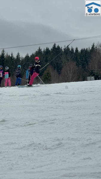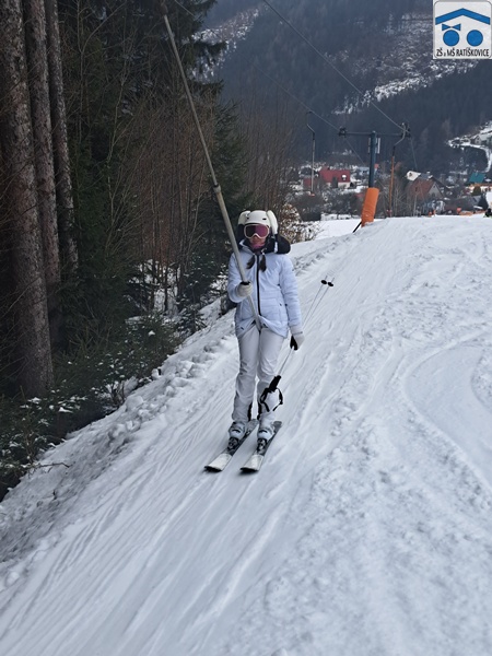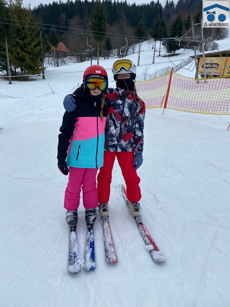 V pondělí 2. 2. jsme se vydali na lyžařský kurz, na kterém jsme kromě lyžování zažili spoustu skvělých zážitků. Po příjezdu na svah jsme se rozdělili do skupin podle toho, jak moc jsme uměli lyžovat. První den vypadalo lyžování začátečníků spíš jako trénování padání a vstávání, nakonec jsme se však lyžovat naučili všichni. Každý večer byl zpestřen spoustou her vždy od jiných pokojů. Odpoledne bylo většinou hodně záživné: od hraní una, kradení sladkostí až po bití nabíječkou. Každý den jsme měli výborný oběd, snídani a večeři a taky dobré svačinky. V lyžování jsme se každý den zlepšovali a na konci jsme zvládli sjet i ten nejvyšší kopec. Každý den kromě pátku a pondělí probíhal stejně, ráno byl budíček v 7:30, v osm hodin se bodovali pokoje a vracely telefony, v 8:30 byla snídaně. V 9:30 jsme si šli obouvat lyžáky a potom jsme vyrazili na svah. Tam jsme s přestávkou lyžovali až do dvou hodin a potom jsme se vrátili na oběd a měli jsme volno. Ve středu bylo noční lyžování, na které šli lyžaři jenom z první, druhé a části třetí skupinky. V 19:00 byla večeře a v 20:00 začínal večerní program, který byl cca do 21:30. Pak učitelé vybírali telefony a v jedenáct byla večerka. Měli jsme taky možnost jít do bazénu, což spousta z nás využila. Z lyžáku jsem si odnesla spoustu zážitků, na které nikdy nezapomenu.